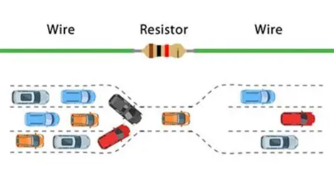 wo der Strom ungehindert fließt, während der Widerstand als schmaler Durchgang fungiert