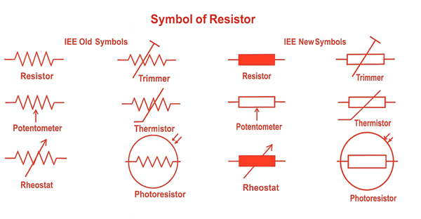 Es gibt zwei gängige Darstellungen eines Widerstands.Das alte IEEE-Symbol ist als Zickzacklinie gezeichnet und symbolisiert den Widerstand gegen den Stromfluss, während das neue IEEE-Symbol eine rechteckige Form für ein einfacheres und moderneres Aussehen verwendet.Beide Formen dienen demselben Zweck und zeigen an, wo innerhalb eines Stromkreises Widerstand angelegt wird.