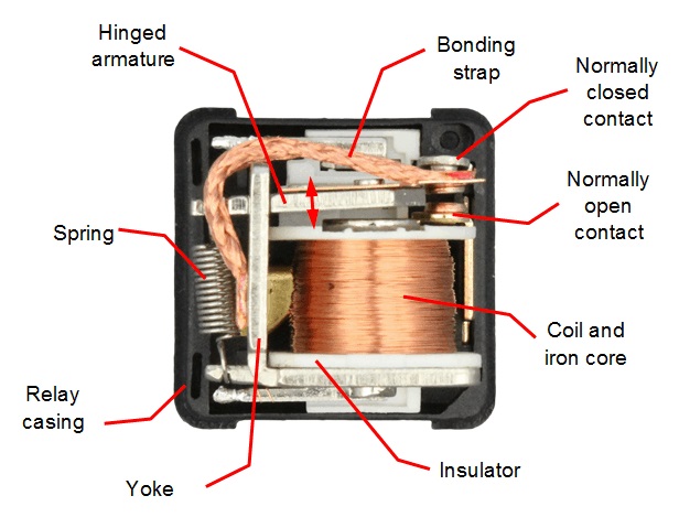 Ein Reed -Relais arbeitet mit einem Magnetfeld, um die Schalterkontakte zu beeinflussen.Wenn das Magnetfeld in der Nähe des Schalters aufgetragen wird, magnet es die Nickel-Eisen-Kontakte, wodurch sie mit den gegenüberliegenden Polen nach Norden und Süden ausgerichtet sind, die eine Attraktion erzeugen, die die Kontakte zusammenzieht und die Schaltung schließt.