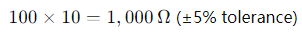 Dies führt zu einem Widerstand von 1 km Ohm mit einem zulässigen Toleranzbereich von 950 Ohm bis 1.050 Ohm.